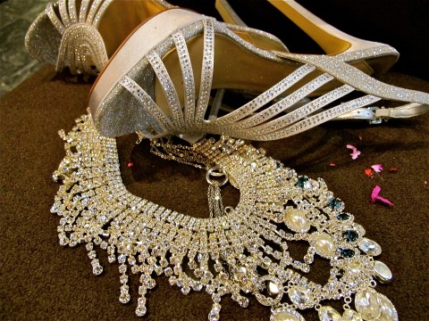 I had so many crystals, rhinestones jewels and shiny dresses that I kept adding as much as I could. More shine, more fun. I love the idea of pilling 3 or 4 of theses necklaces together. What’s wrong about looking like a Barbie once in a while?