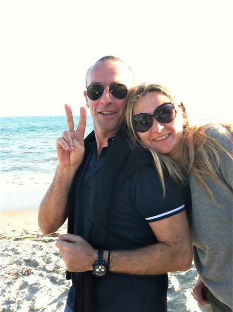 Brad, my favorite producer sweep the sand, Sandrine and Jerome make faces for the camera and we are getting ready to shoot some beautiful pictures of Sharon Stone. I did try the magic cream she sells so well, capture totale and it seems to work. Maybe it is time for me to start using good beauty products!
